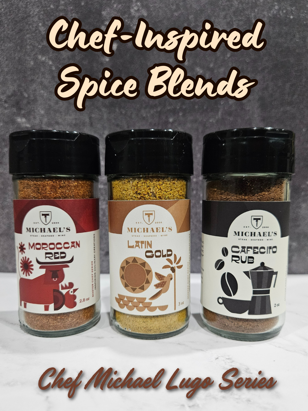 Created through a collaboration with Cultivate Tea and Spice Company and Award-Winning local Chef Michael Lugo of Michael's St. Augustine, Pesca Vilano Rooftop, and La Nouvelle Bistro, this bundle includes all three Michael's Spice Blends crafted as an invitation to transform simple ingredients into bold expressions of flavor.