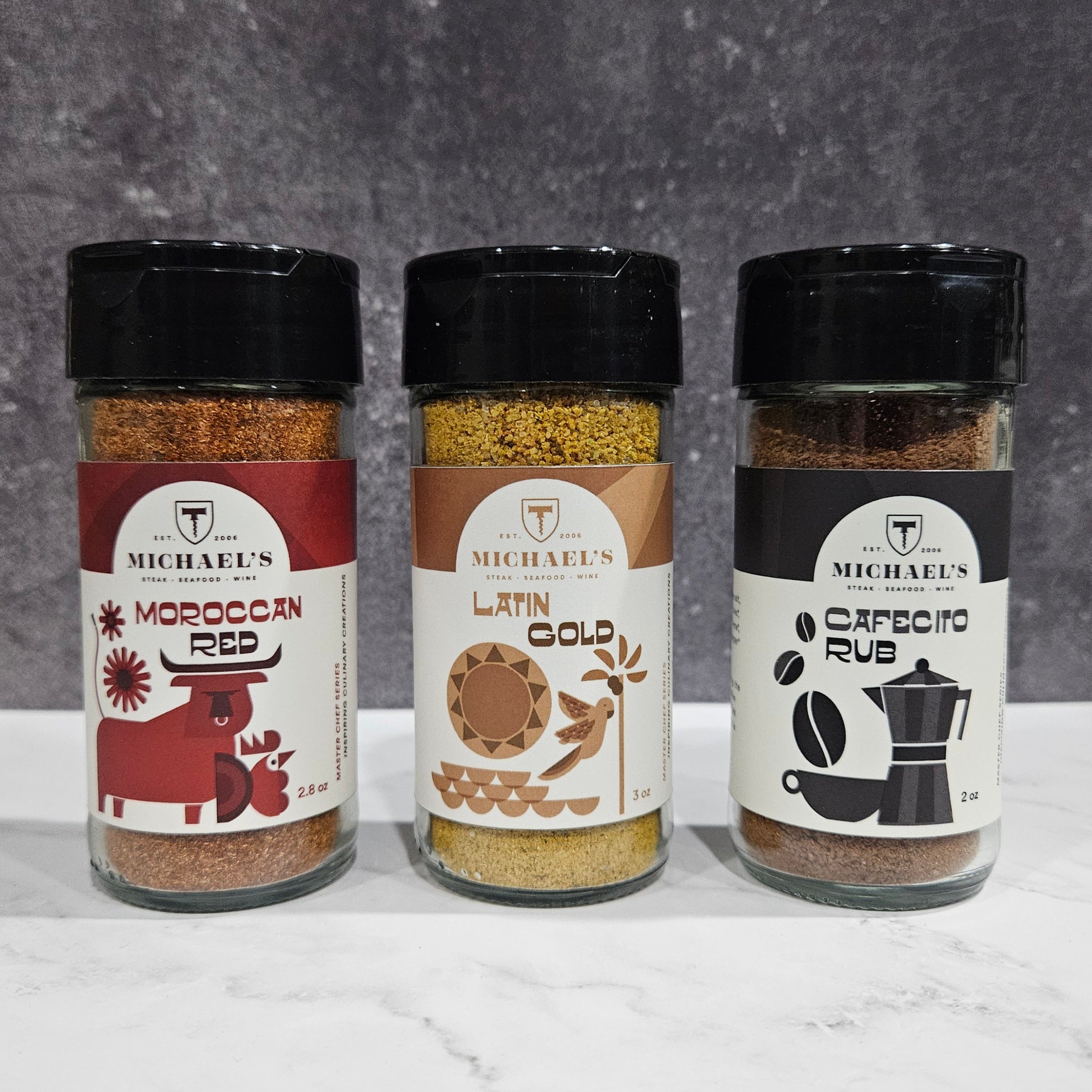 Michael's Moroccan Red seasoning fuses the Mediterranean flavor of southern Spain and North Africa. Smokey, floral, and aromatic notes compliment pork, chicken, and seafood.